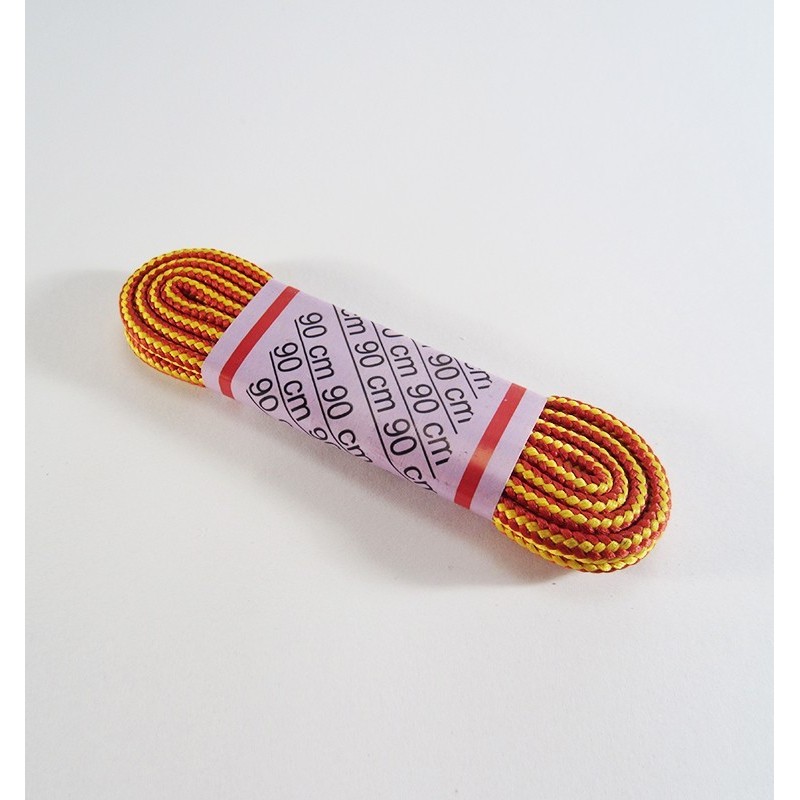 Par de cordones redondos bicolor tipo Panamá de poliéster trenzado de 90 cm de longitud, resistentes y con un diseño clásico en dos colores, ideales para calzado deportivo, urbano o de montaña.