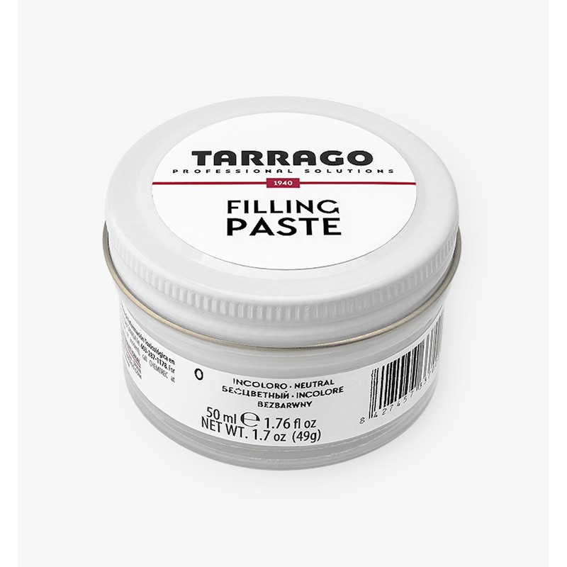 Pasta de relleno flexible, incolora y de color, especialmente diseñada para cubrir rozaduras, cortes o agujeros en el cuero liso y el cuero sintético.