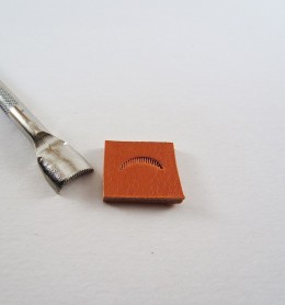 El trozo de cuero de la fotografía tiene un tamaño aproximado de 2x2 centímetros.