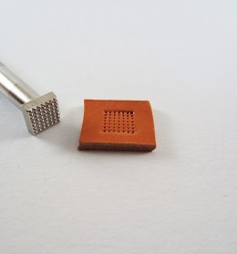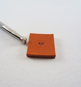 El trozo de cuero de la fotografía tiene un tamaño aproximado de 2x2 centímetros.