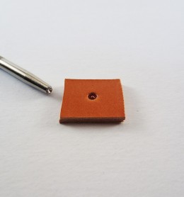 El trozo de cuero de la fotografía tiene un tamaño aproximado de 2x2 centímetros.