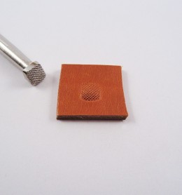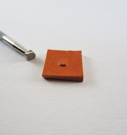 El trozo de cuero de la fotografía tiene un tamaño aproximado de 2x2 centímetros.