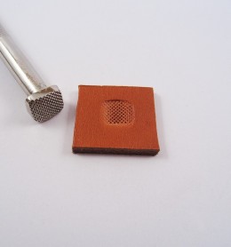 El trozo de cuero de la fotografía tiene un tamaño aproximado de 2x2 centímetros.