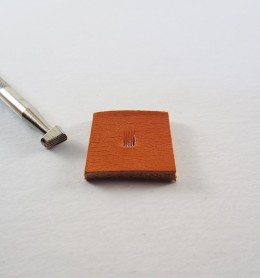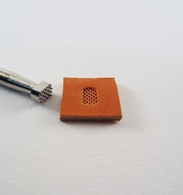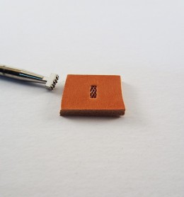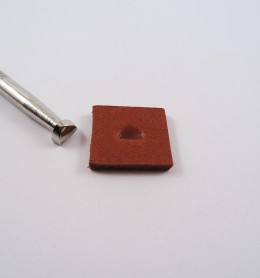 El trozo de cuero de la fotografía tiene un tamaño aproximado de 2x2 centímetros.