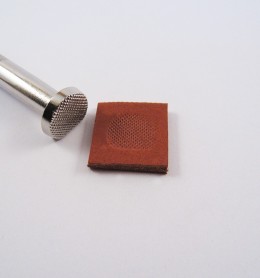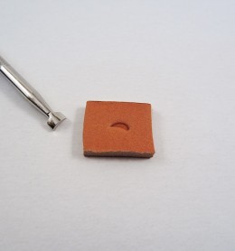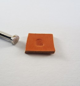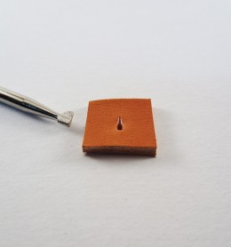 El trozo de cuero de la fotografía tiene un tamaño aproximado de 2x2 centímetros.