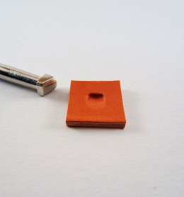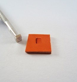 El trozo de cuero de la fotografía tiene un tamaño aproximado de 2x2 centímetros.